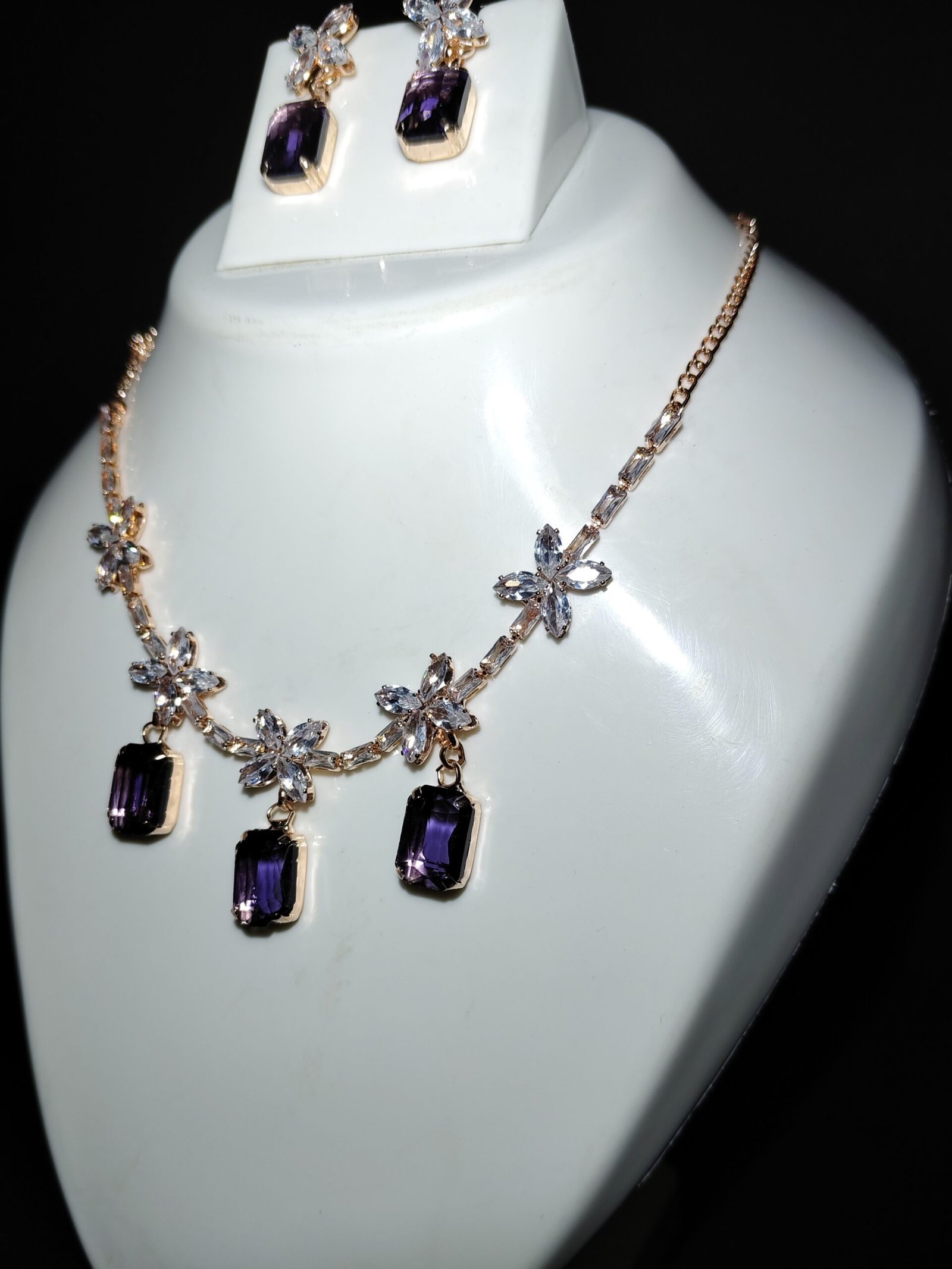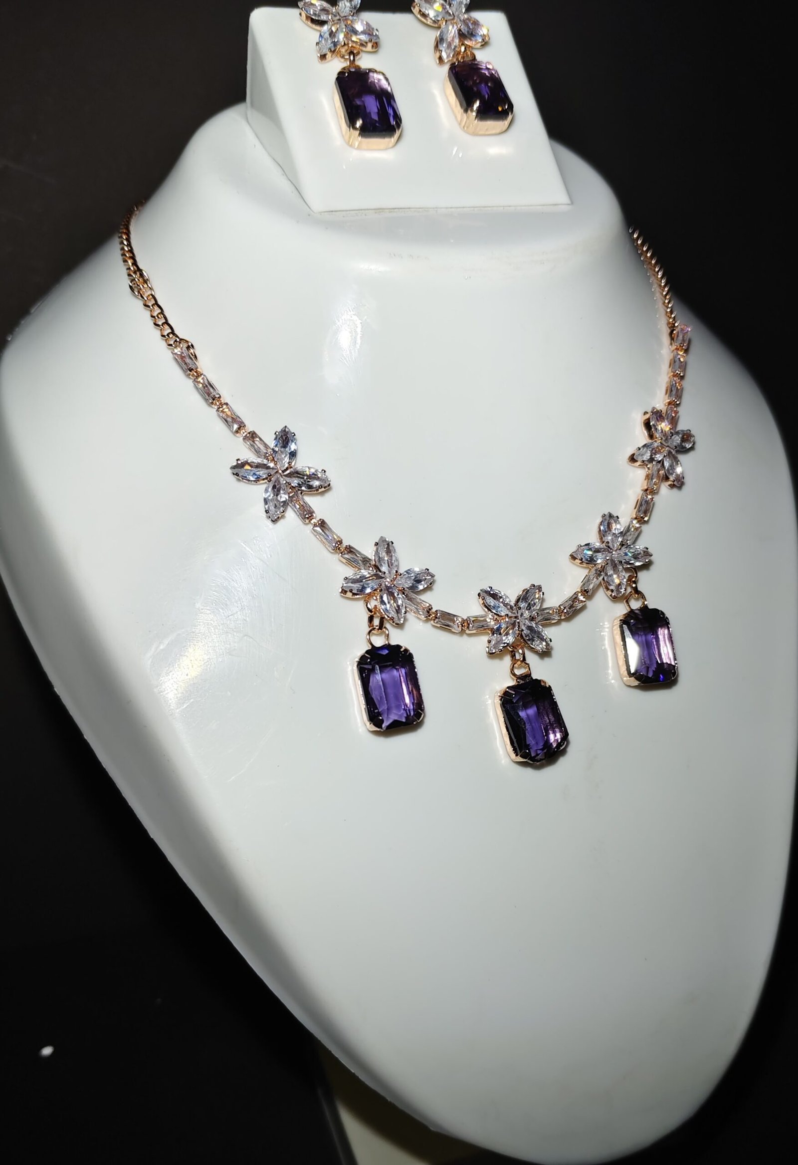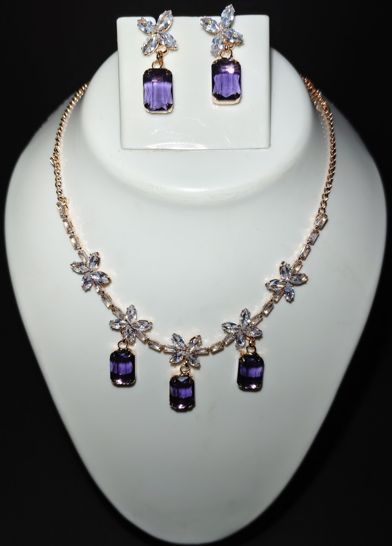 Amethyst Bloom Gala Set / Royal Amethyst Dangle Necklace/VNSJwellery Set