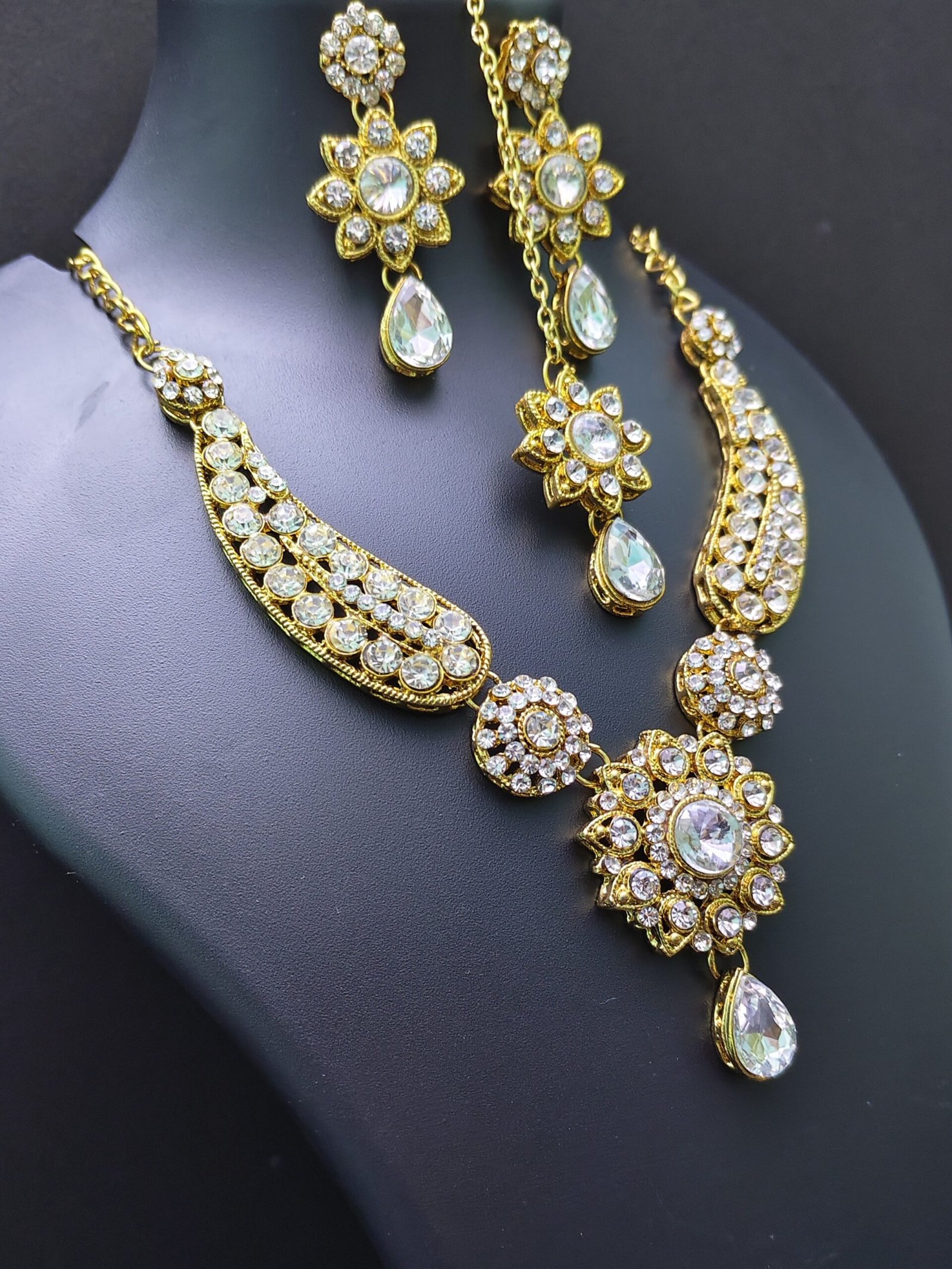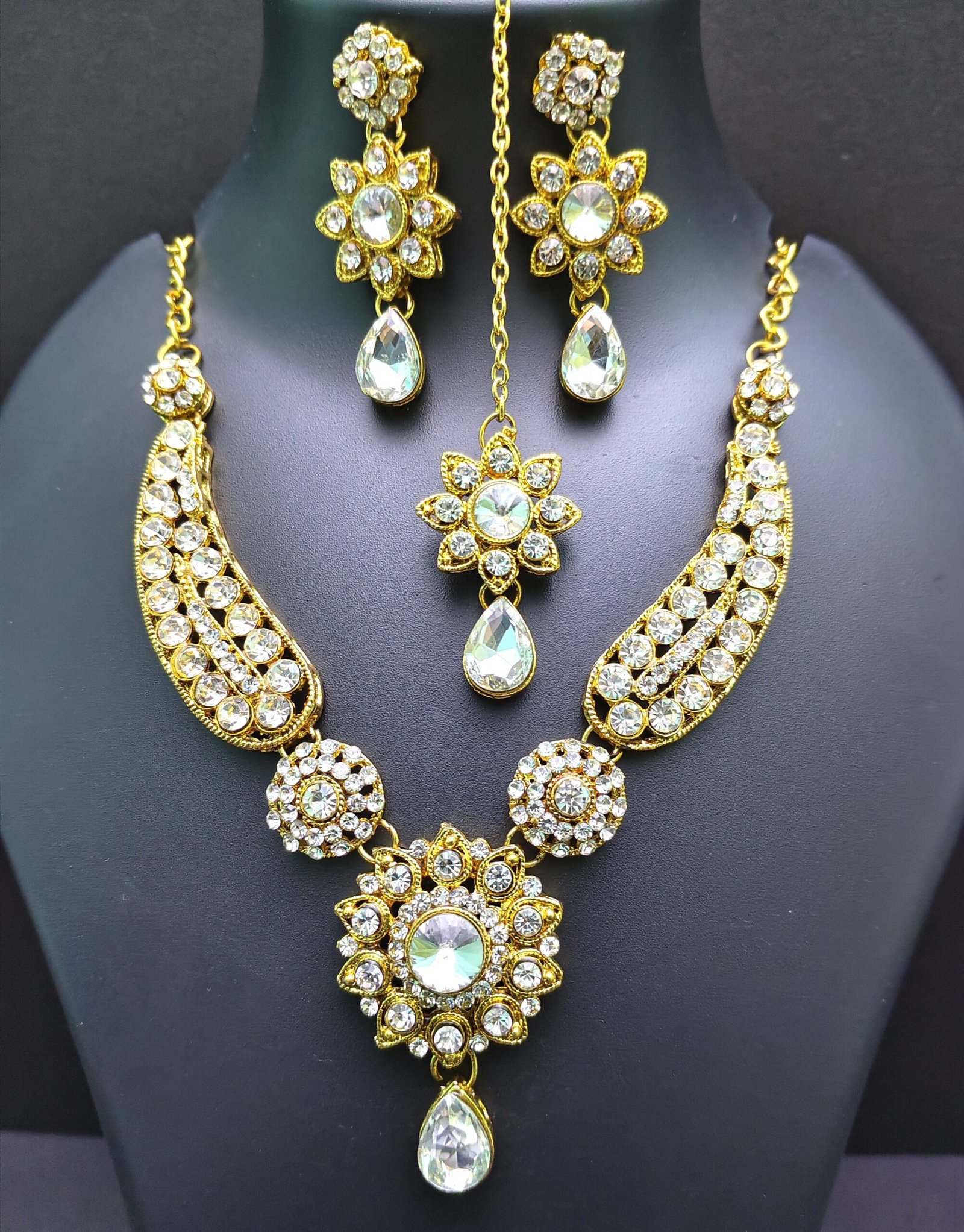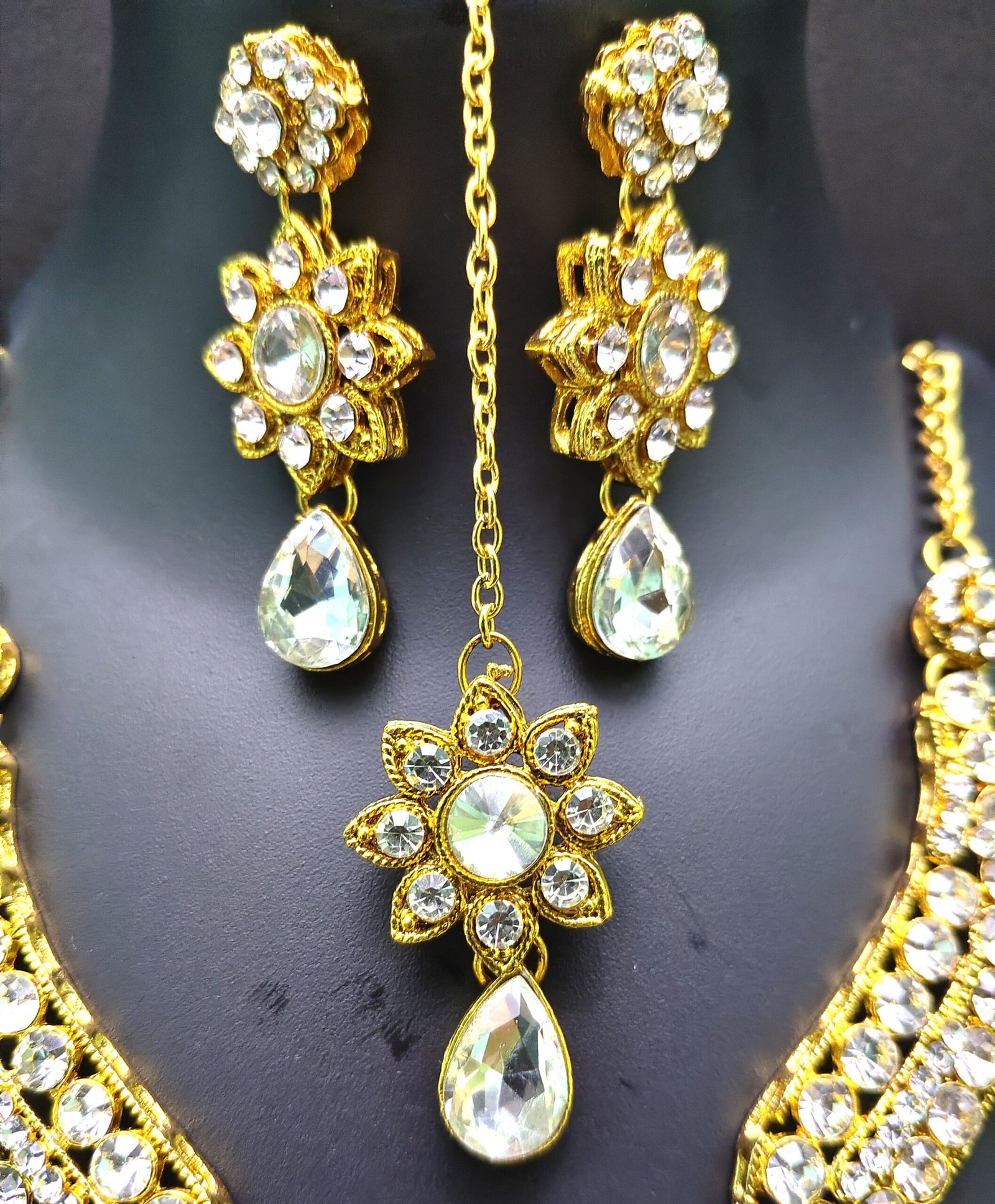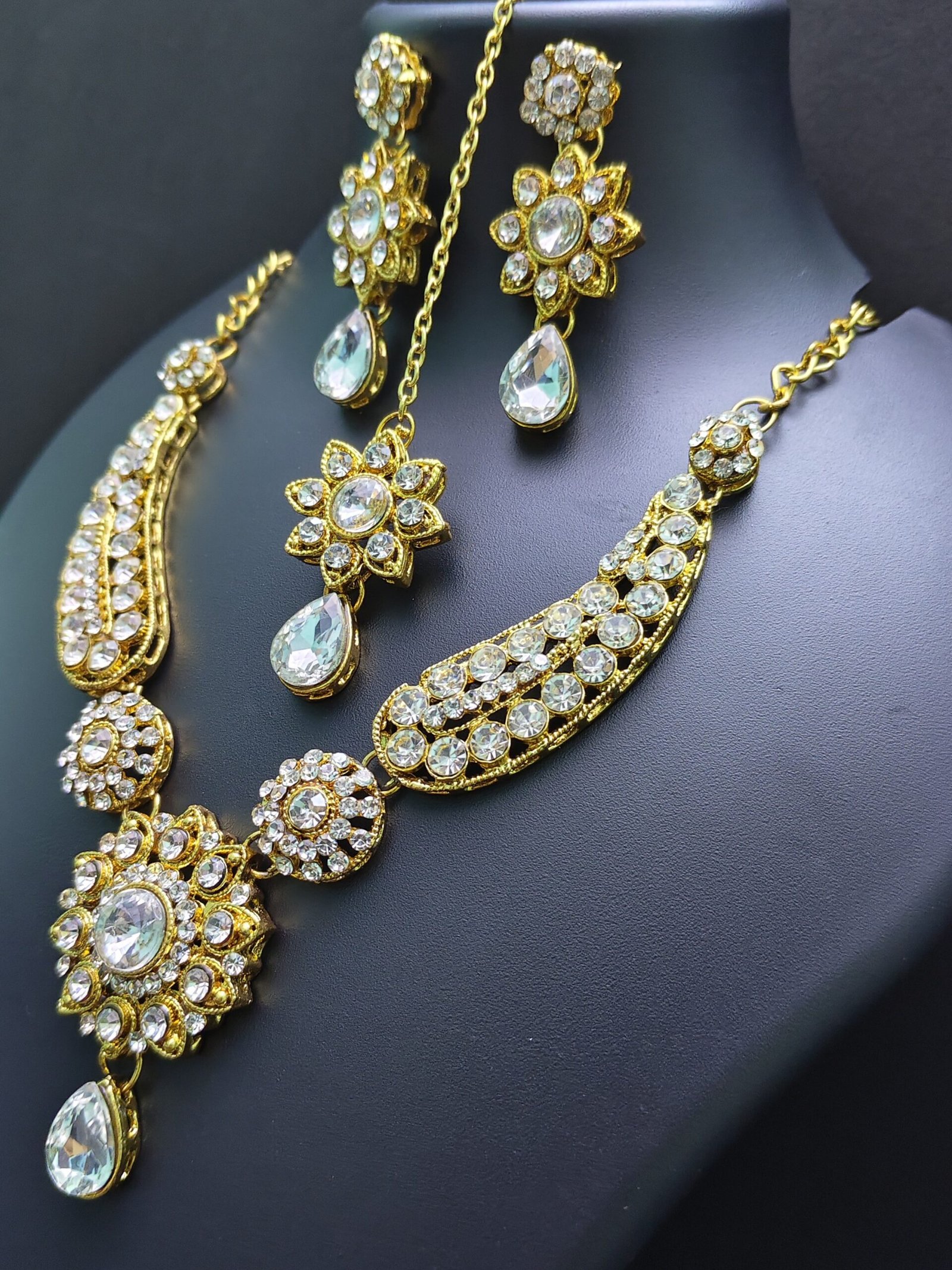 Add a touch of timeless elegance to your collection with this exquisite gold-plated crystal necklace set. Perfectly designed to