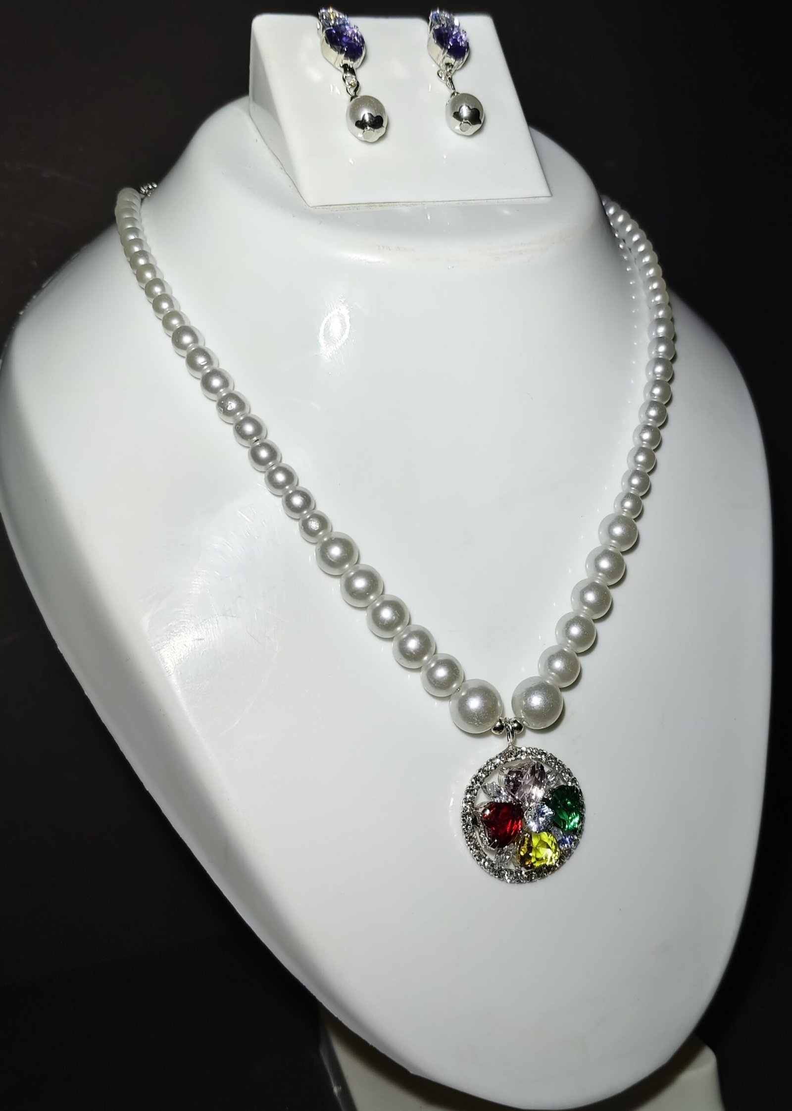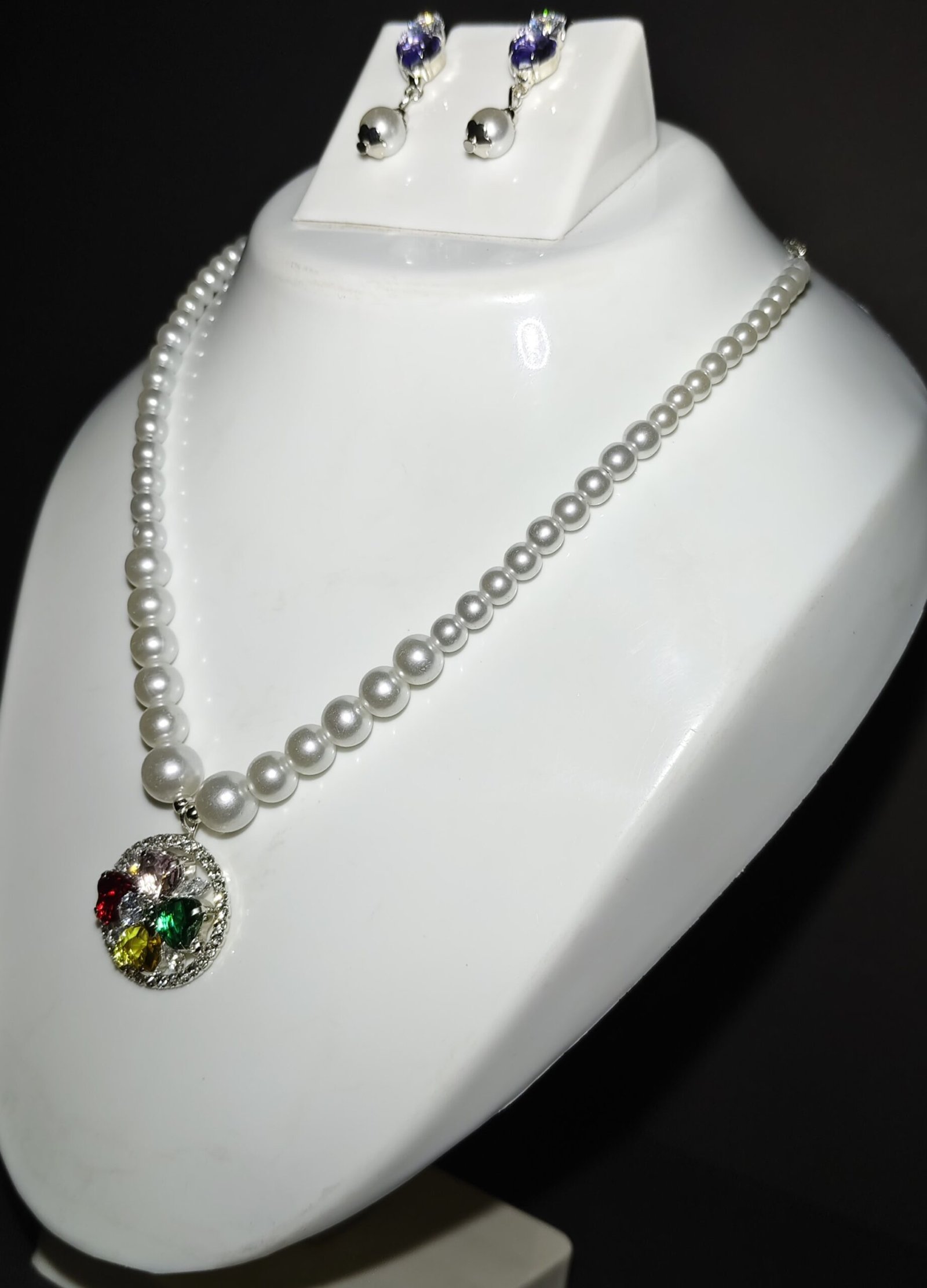 Indulge in the beauty of pearls and gemstones with this captivating set that blends classic charm with modern sophistication.Â