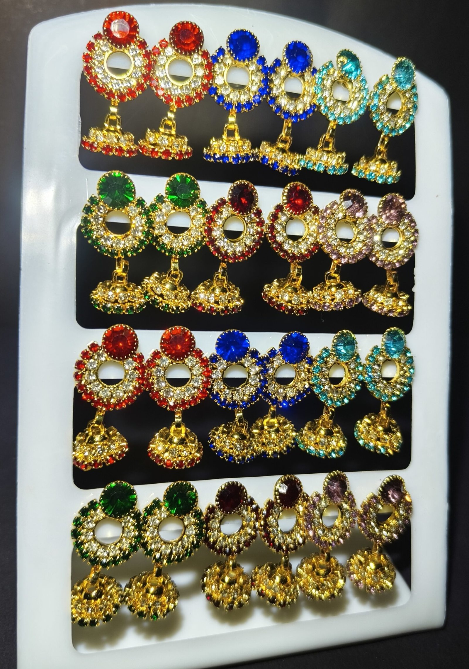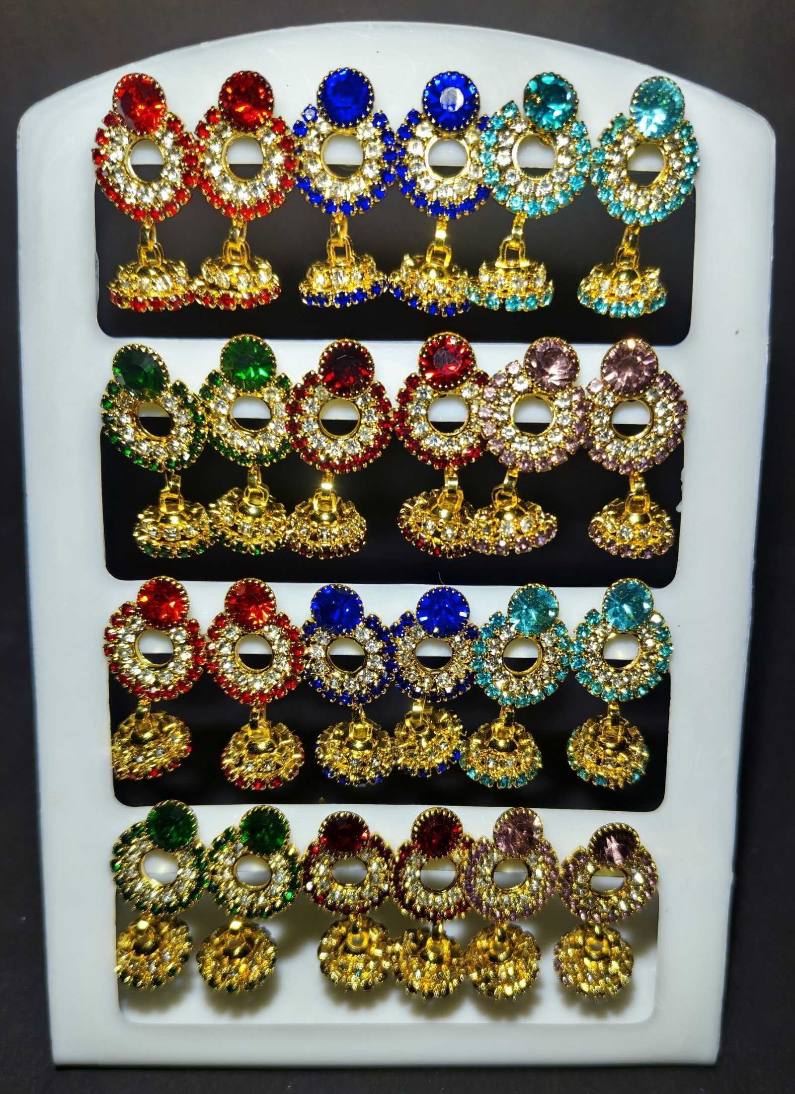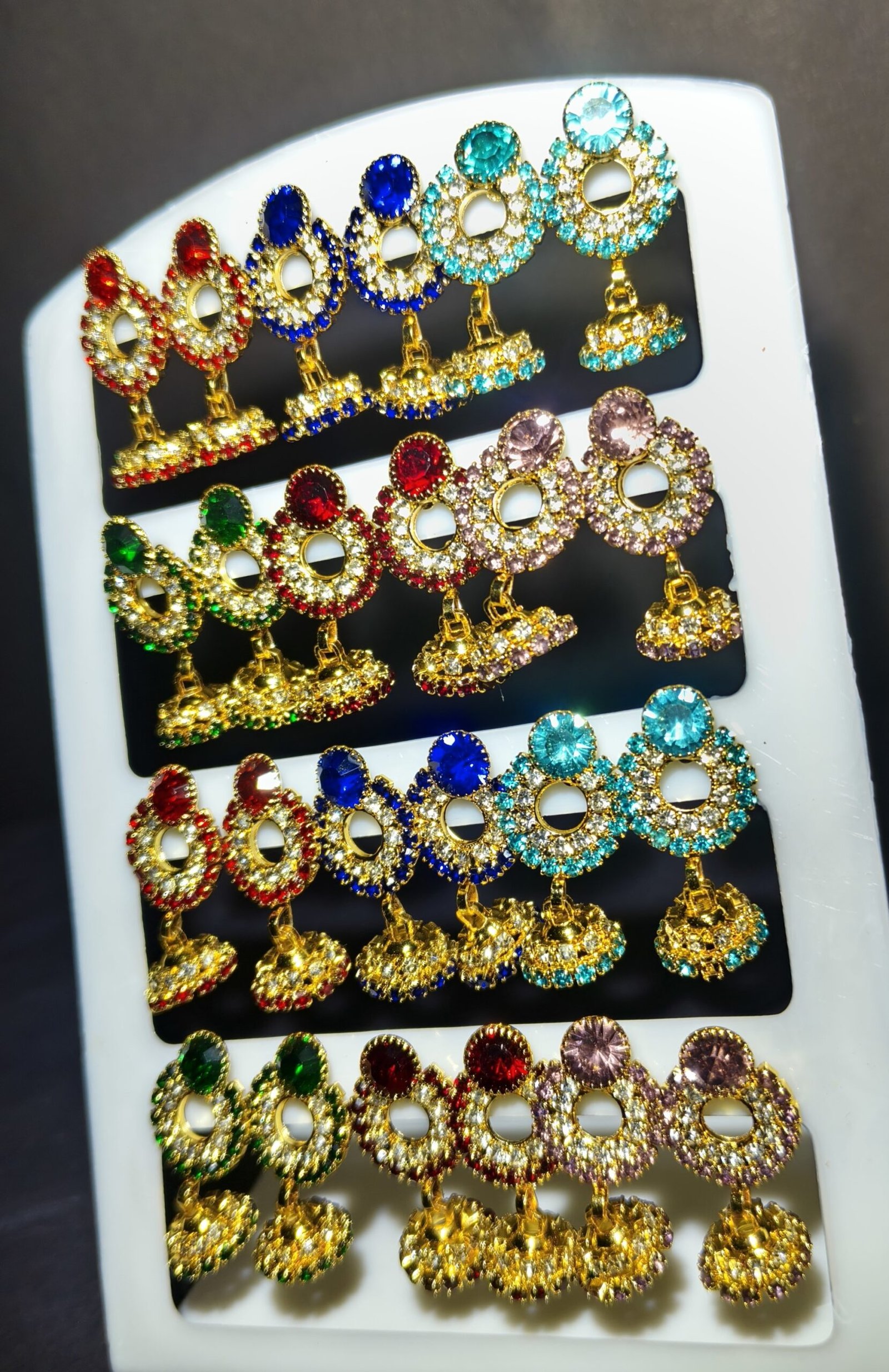 Aesthetic Appeal: The combination of vibrant red, green, blue, and purple stones adds depth and dimension, ensuring these earrings