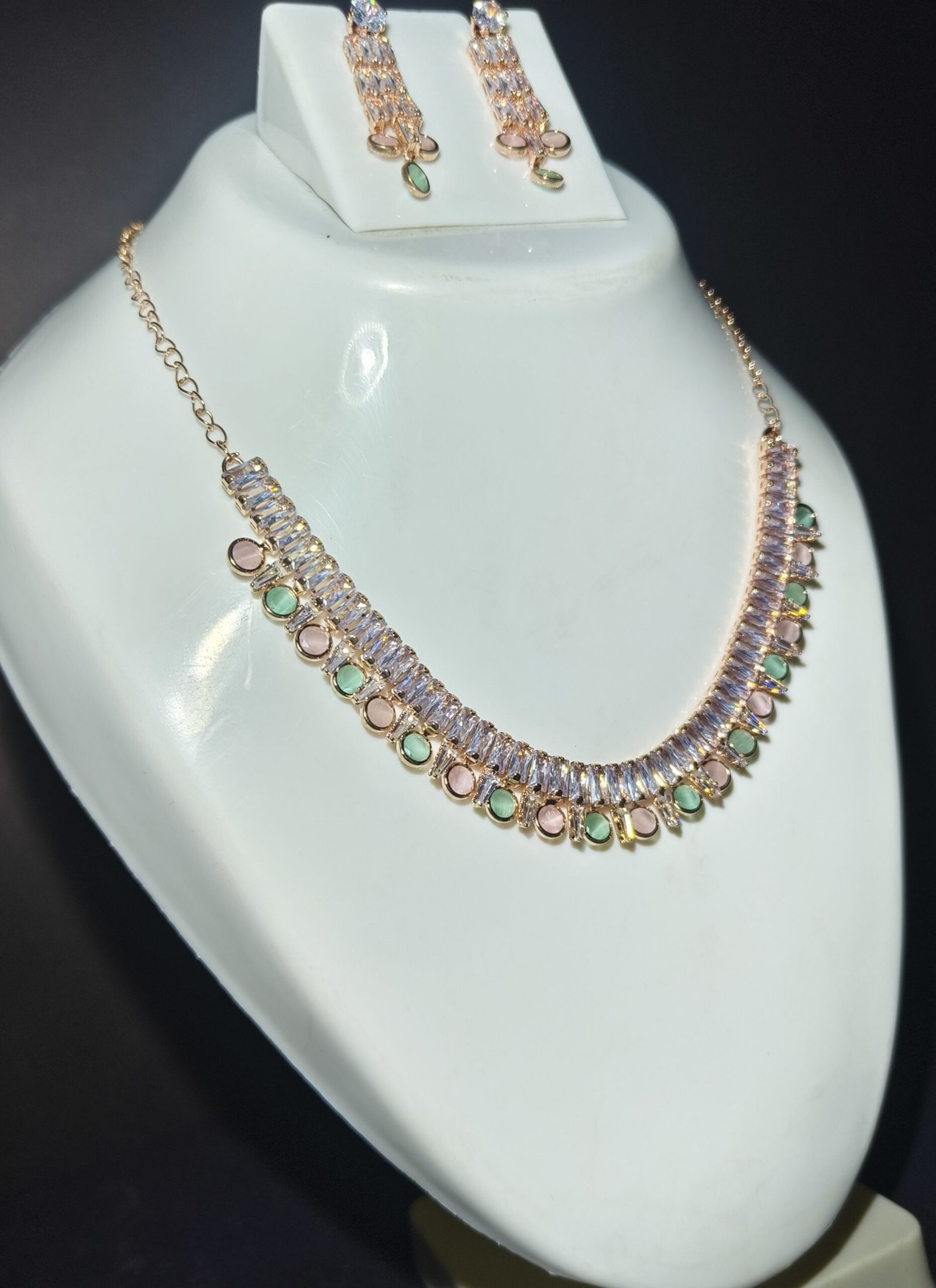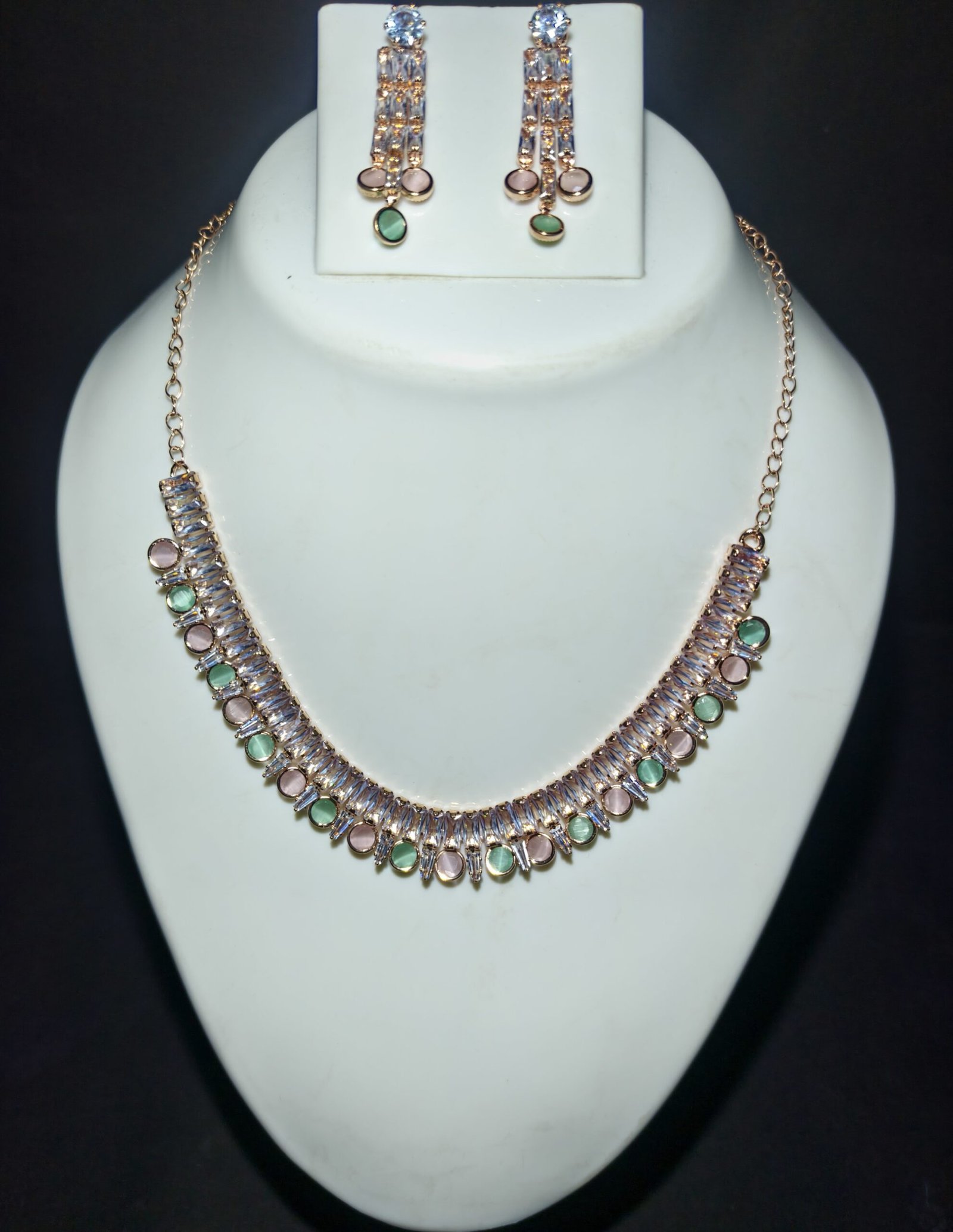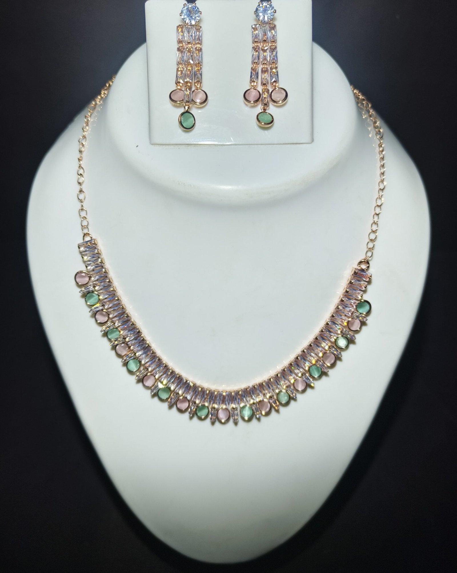 Elegant Rose Gold Crystal Earrings & Necklace Set